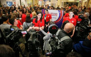 Велики број навијача и представника медија, стрпљиво је чекао вечерас у холу ТЦ Ушће долазак женске репрезентације Србије. Мало након 19 часова, громогласан аплауз присутних, скренуо је пажњу свих поестилаца [...]