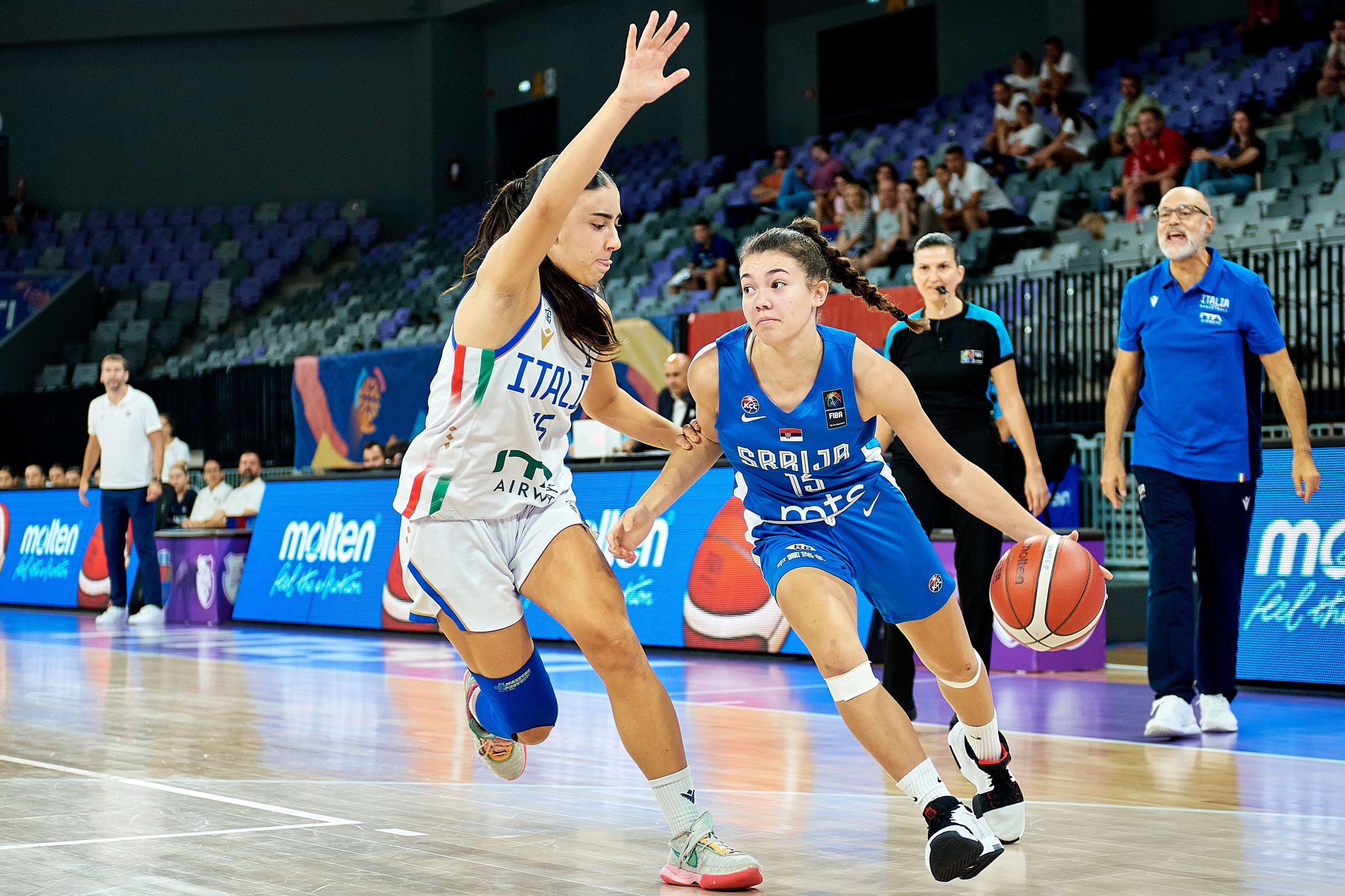 Расположена Максимовић покренула је серију Србије 11:0, којом је наш тим прешао у вођство 28:27. Ипак, Италија је добила прво полувреме 30:28, после тројке Переђо.