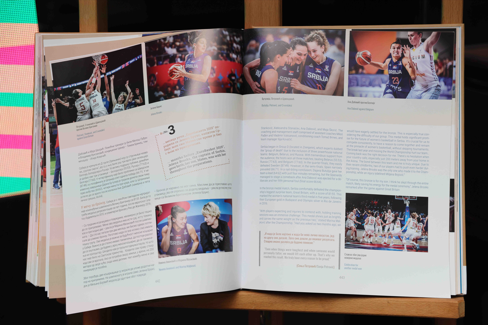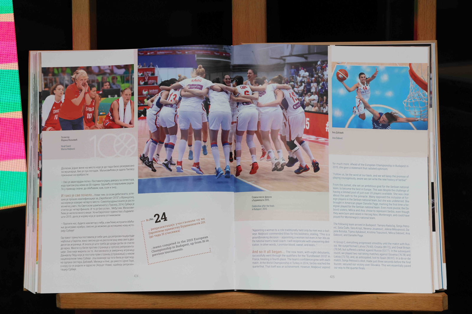 – Као представник женске кошарке у Србији, изузетна нам је част да смо успеле, након оне наше старије и познатије генерације из осамдесетих која је постигла највеће успехе, да се и ми нађемо на страницама ове књиге и понудимо материјал да будемо међу ових сто прича. Као што је већ речено, медаље су нешто што сви највише памте. Мислим да је за све нас највећи утисак аманет који остављамо за даље, што је и највећа вредност свих успеха које смо постигле.