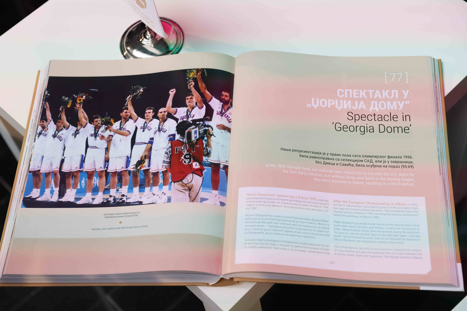 О књизи и пребогатој историји наше кошарке говорили су председник КСС Предраг Даниловић, директор Службеног гласника Младен Шарчевић, редитељ Дарко Бајић и аутор Александар Милетић. Свечаном догађају присуствовали су и генерални секретар КСС Златко Болић, потпредседник за мушку кошарку Миленко Тепић, легендарни асови и цењени гости из света кошарке и спорта Блажо Стојановић, Владислав Лучић, Миодраг Марић, Миодраг Бабић, Ђорђе Вишацки, Јелица Комненовић, Гордана Радовић, Предраг Бојић, Млађан Шилобад, Владимир Станковић и други, док су лепе речи упутили и Соња Васић, Братислав Ђорђевић и Мирољуб Дамњановић, који су и сами писали историју трофејног спорта.