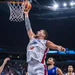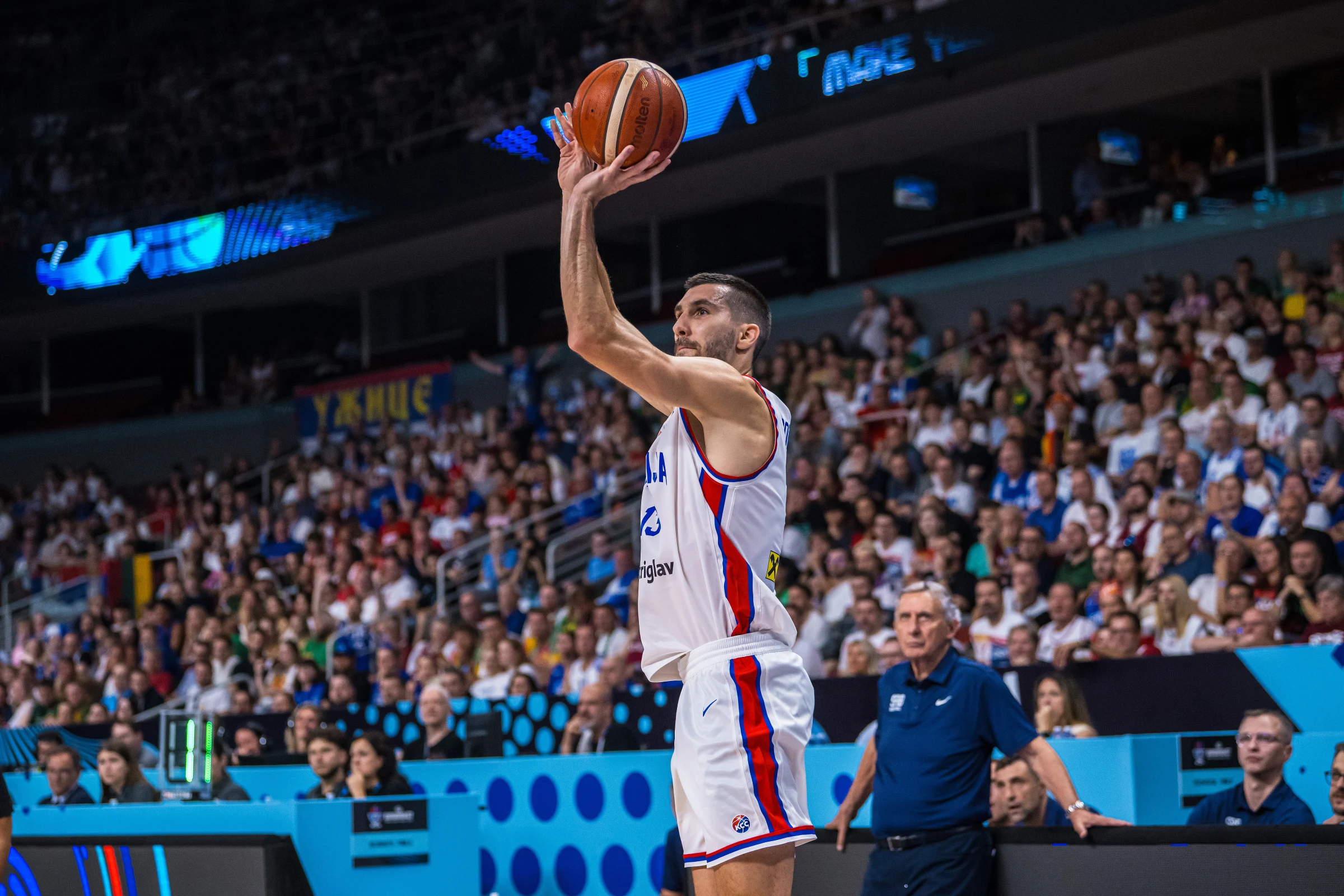 Друга четвртина донела је прво вођство Србије након уводних 1:0. Најпре је Огњен Добрић одличним кретањем без лопте, а онда и полагањем донео егал (38:38), да би после Јокићевог поготка из одбојке, наша селекција стигла и до предности (40:38). Резултатску клацкалицу гледали смо током већег дела другог периода, а важну тројку погодио је Василије Мицић. На крају првог полувремена, тим селектора Пешића водио је 48:44.